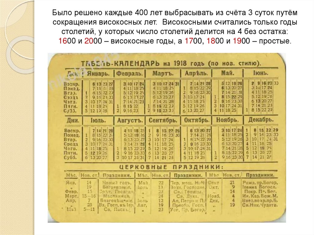 Было решено каждые 400 лет выбрасывать из счёта 3 суток путёмсокращения високосных лет. Високосными считались только годы