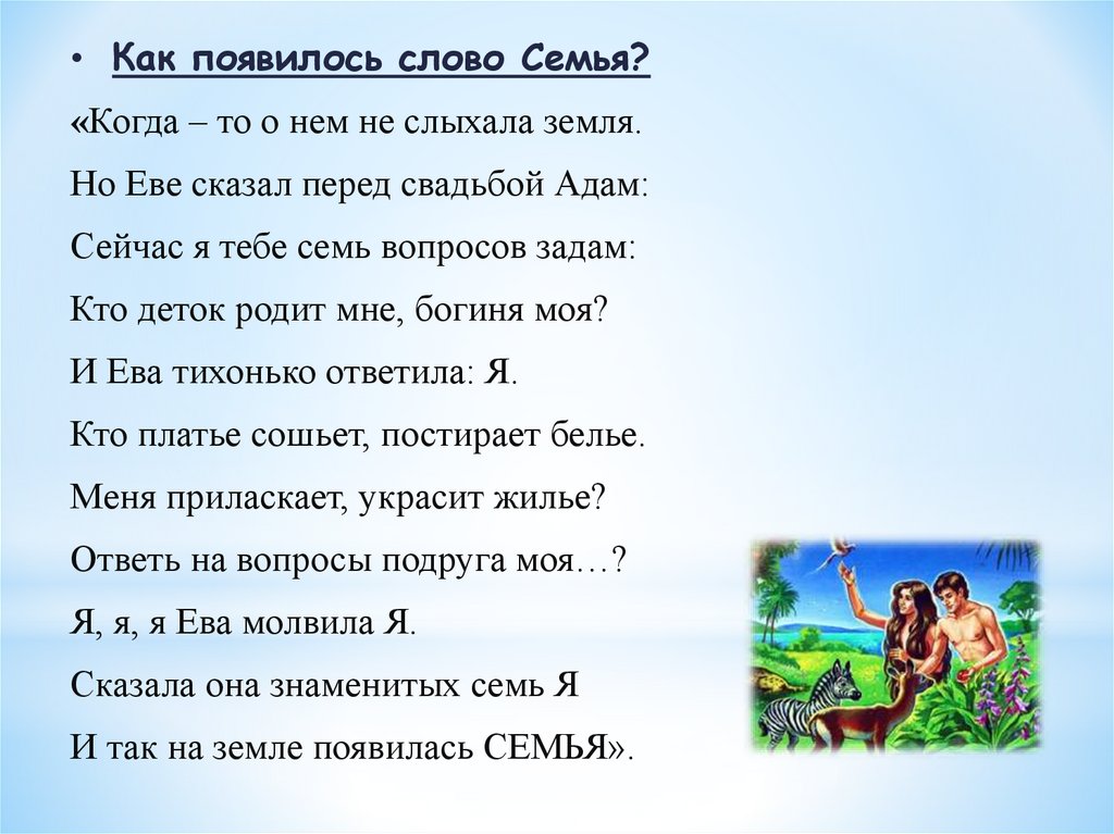• Как появилось слово Семья?«Когда – то о нем не слыхала земля.