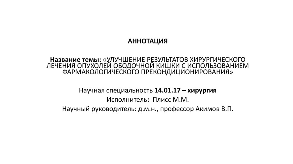 АННОТАЦИЯНазвание темы: «УЛУЧШЕНИЕ РЕЗУЛЬТАТОВ ХИРУРГИЧЕСКОГО