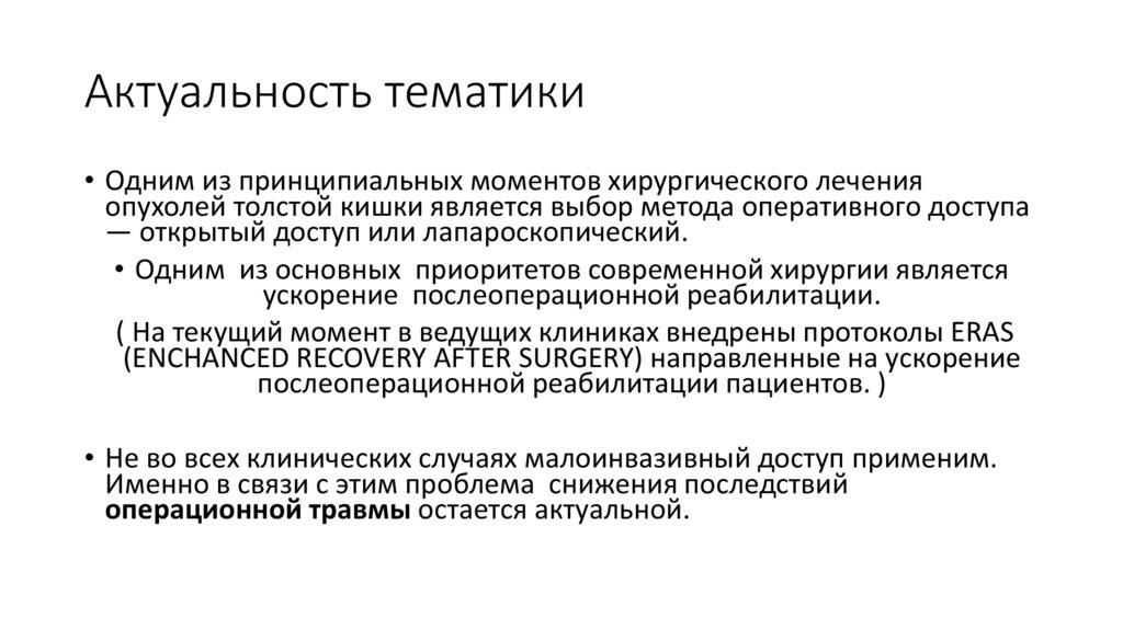 Актуальность тематики• Одним из принципиальных моментов хирургического лечения