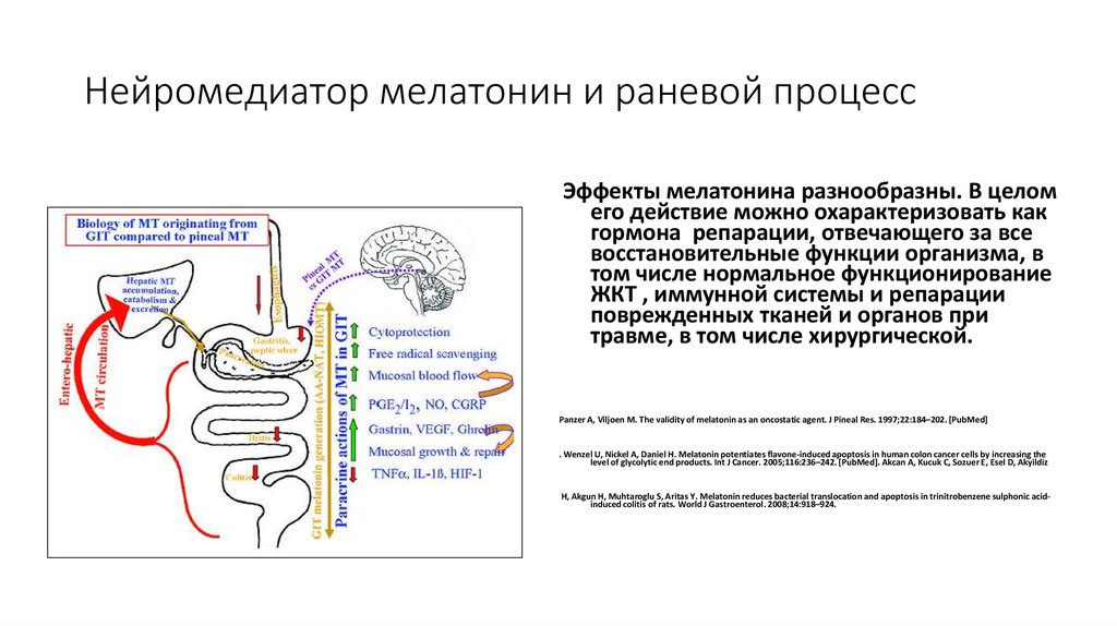 Нейромедиатор мелатонин и раневой процессЭффекты мелатонина разнообразны. В целом
