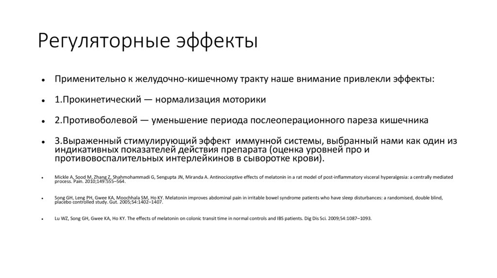 Регуляторные эффектыПрименительно к желудочно-кишечному тракту наше внимание привлекли эффекты:
