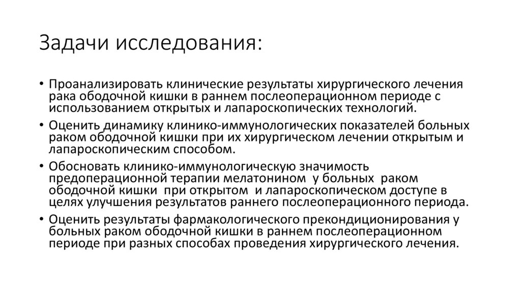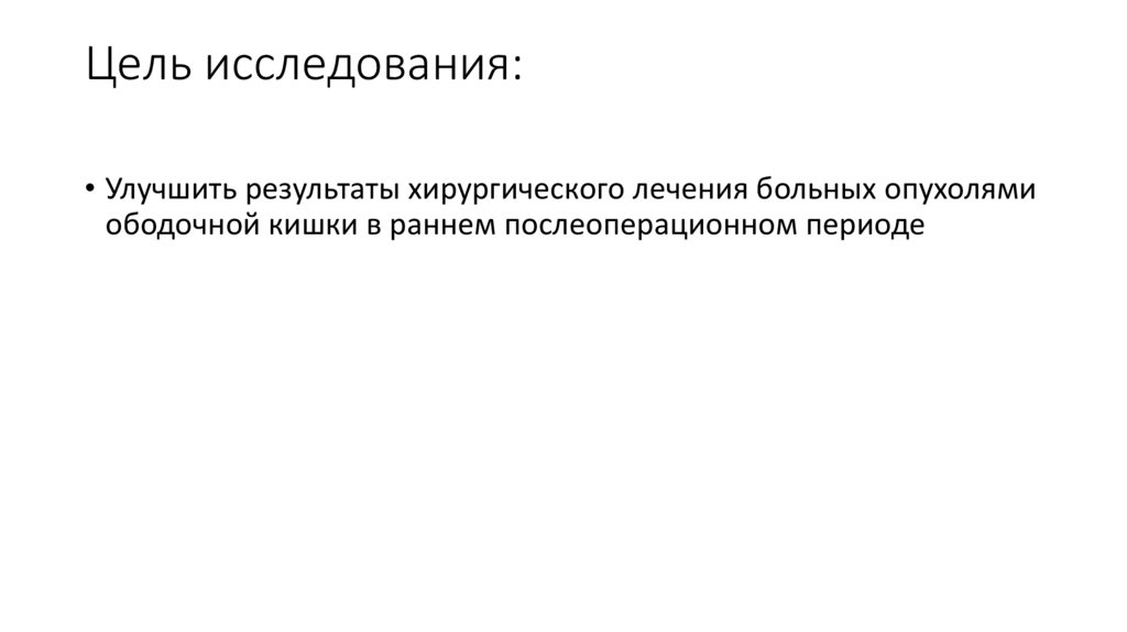 Цель исследования:• Улучшить результаты хирургического лечения больных опухолями