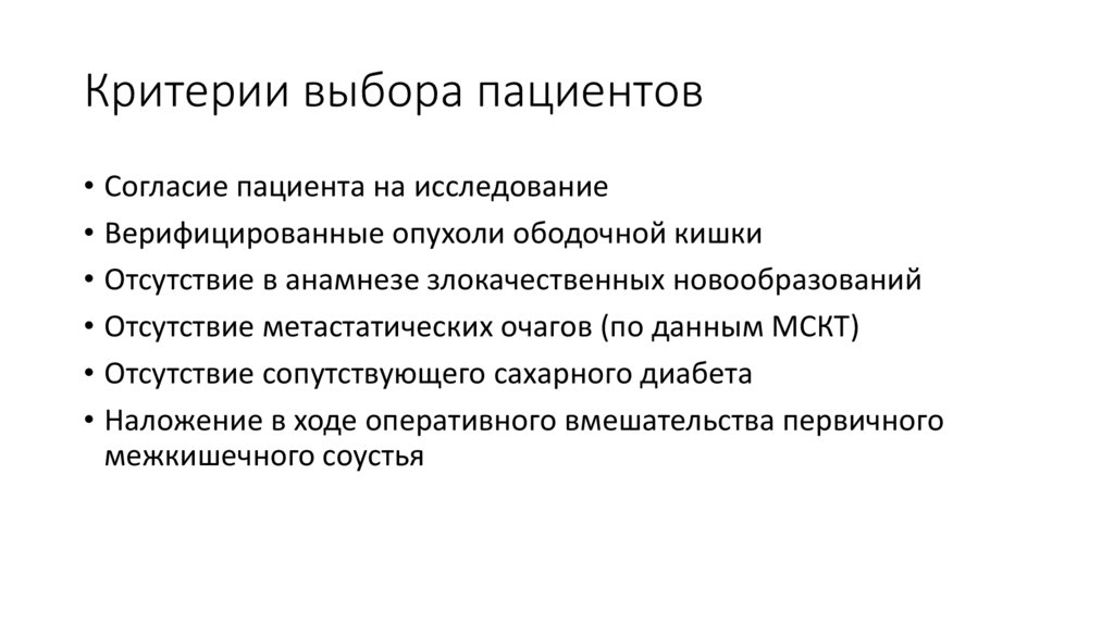 Критерии выбора пациентов• Согласие пациента на исследование