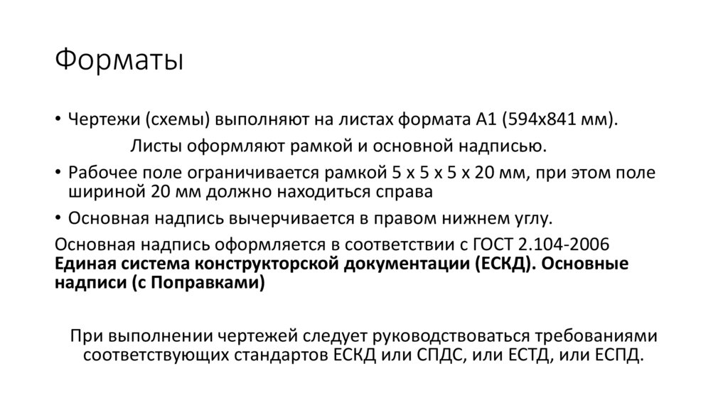 Форматы• Чертежи (схемы) выполняют на листах формата А1 (594х841 мм).