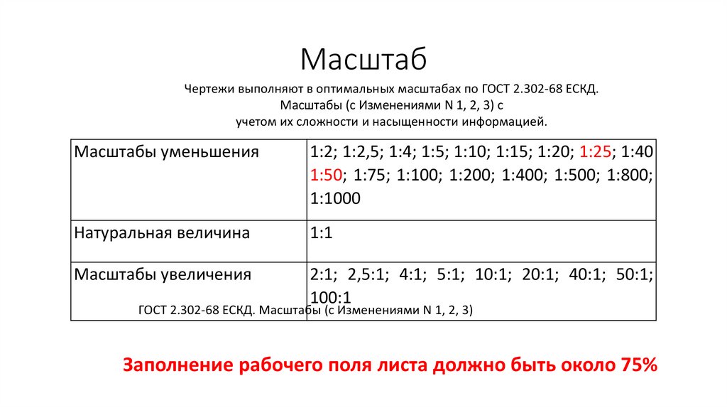МасштабЧертежи выполняют в оптимальных масштабах по ГОСТ 2.302-68 ЕСКД.