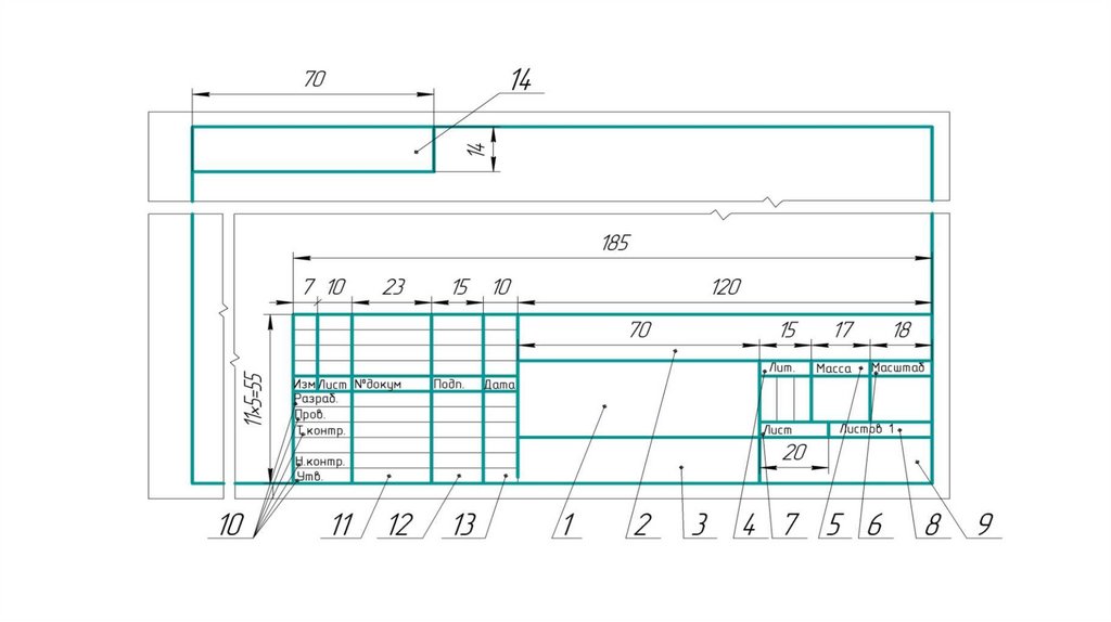 • Основная надпись вычерчивается в правом нижнем углу.