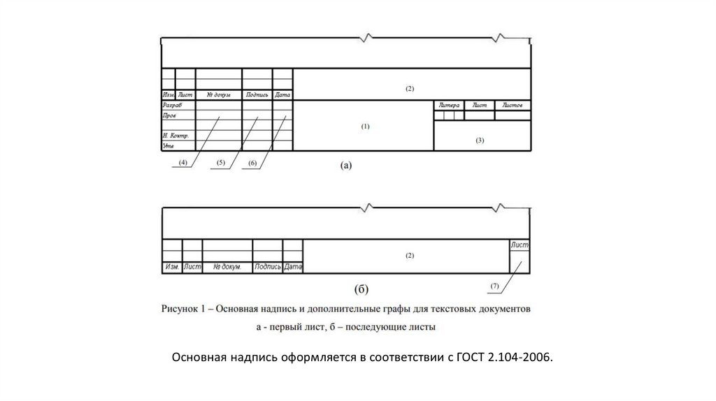 Основная надпись оформляется в соответствии с ГОСТ 2.104-2006