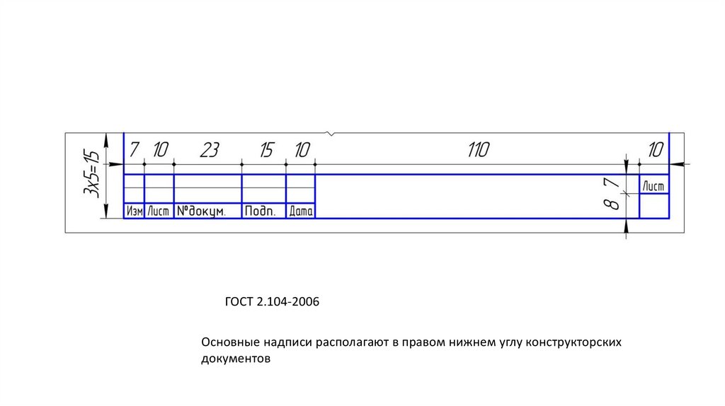 ГОСТ 2.104-2006Основные надписи pасполагают в правом нижнем углу конструкторских
