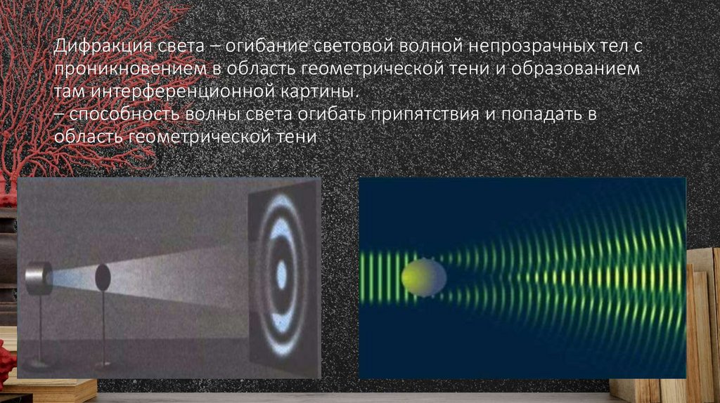 – способность волны света огибать припятствия и попадать в