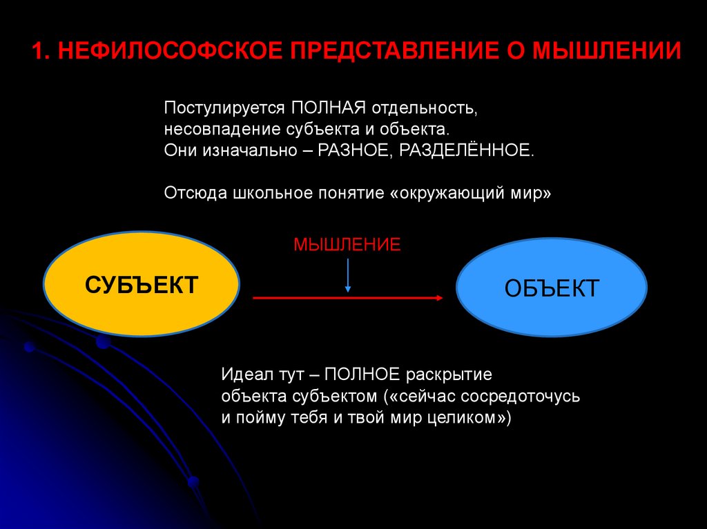 1. НЕФИЛОСОФСКОЕ ПРЕДСТАВЛЕНИЕ О МЫШЛЕНИИСУБЪЕКТ