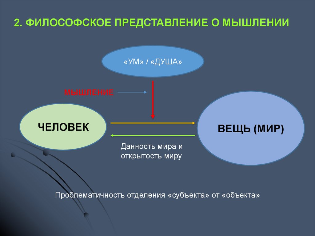 2. ФИЛОСОФСКОЕ ПРЕДСТАВЛЕНИЕ О МЫШЛЕНИИЧЕЛОВЕК