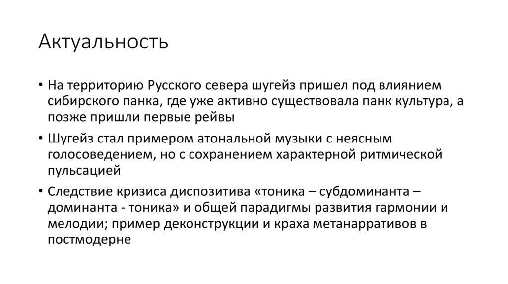 Актуальность• На территорию Русского севера шугейз пришел под влиянием
