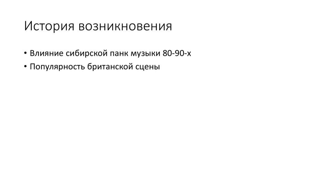История возникновения• Влияние сибирской панк музыки 80-90-х