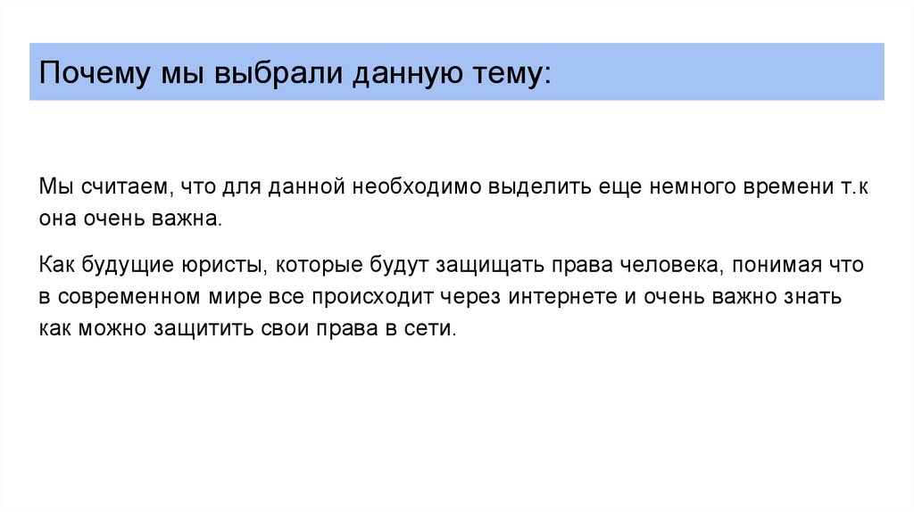 Почему мы выбрали данную тему:Мы считаем, что для данной необходимо выделить еще немного времени т.к