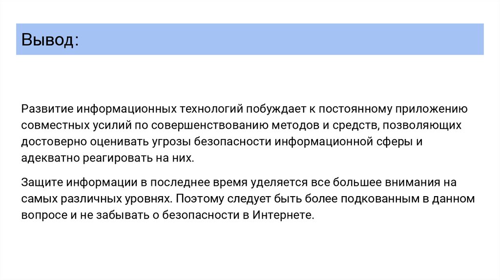 Вывод:Развитие информационных технологий побуждает к постоянному приложению