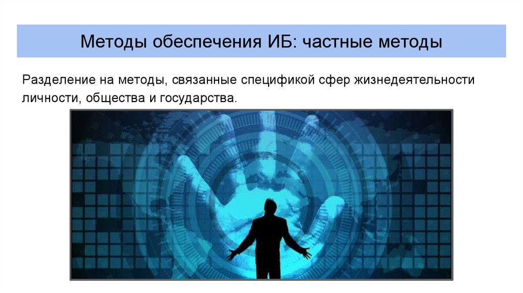 Методы обеспечения ИБ: частные методыРазделение на методы, связанные спецификой сфер жизнедеятельности