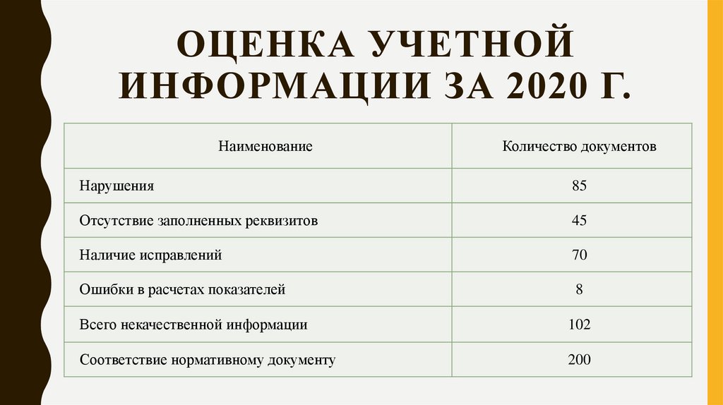 ОЦЕНКА УЧЕТНОЙИНФОРМАЦИИ ЗА 2020 Г.