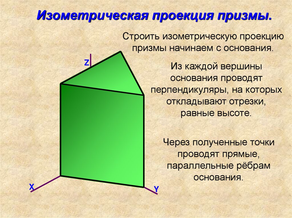 Изометрическая проекция призмы.Строить изометрическую проекцию