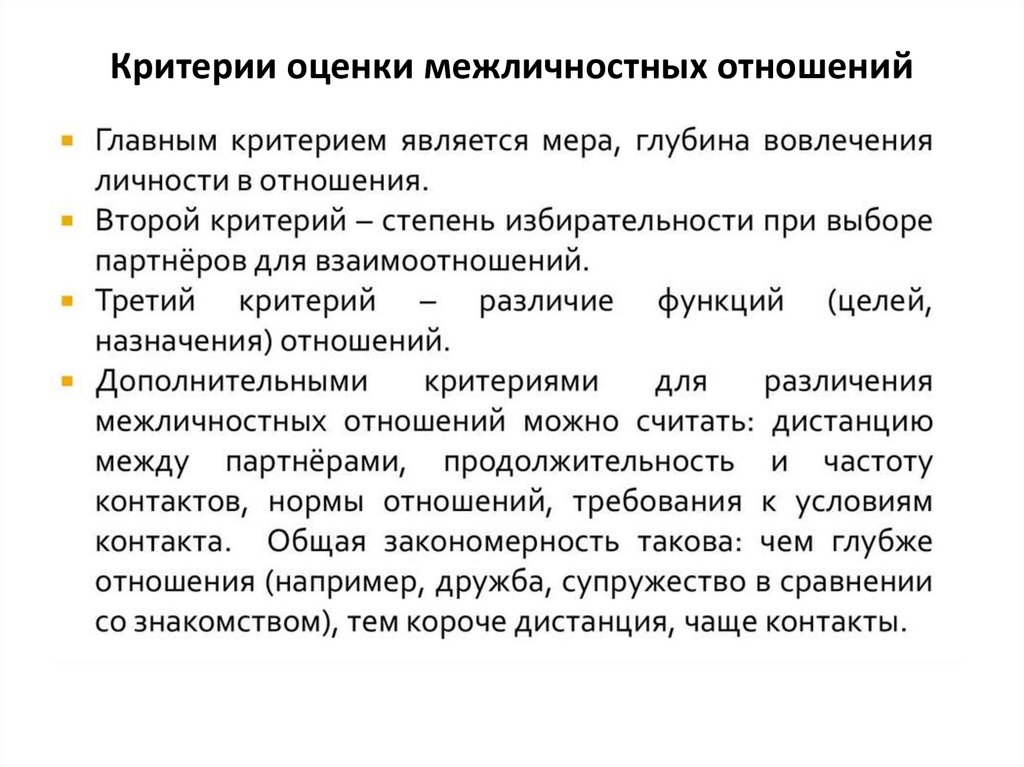 Критерии оценки межличностных отношений12.
