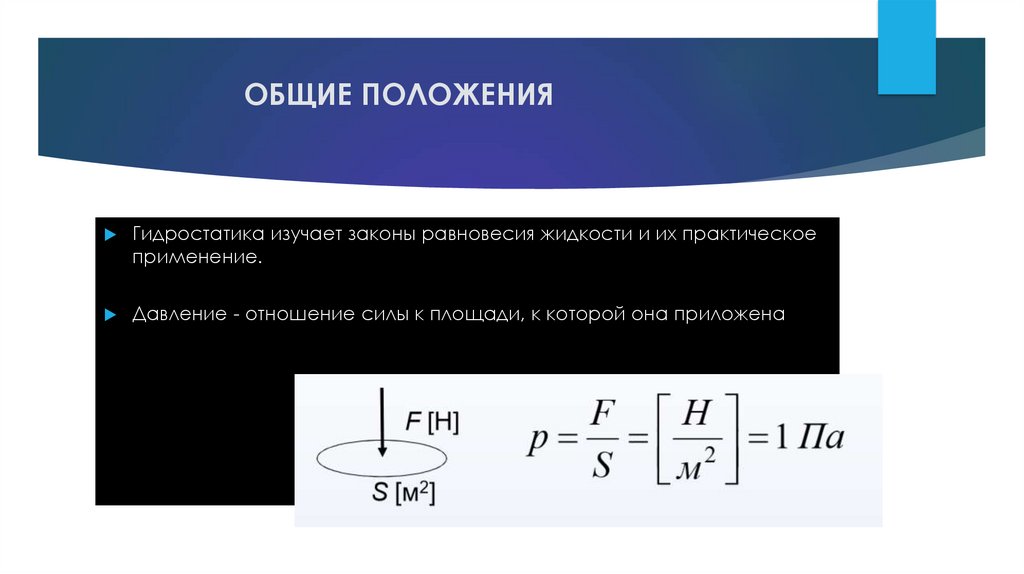 ОБЩИЕ ПОЛОЖЕНИЯГидростатика изучает законы равновесия жидкости и их практическое