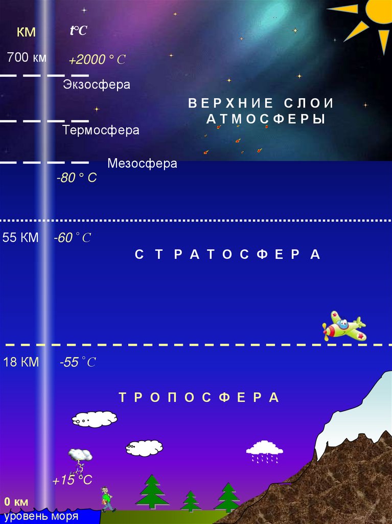 Строение атмосферы. Характеристика слоев ионосферы. Поверхностная и пространственная волна