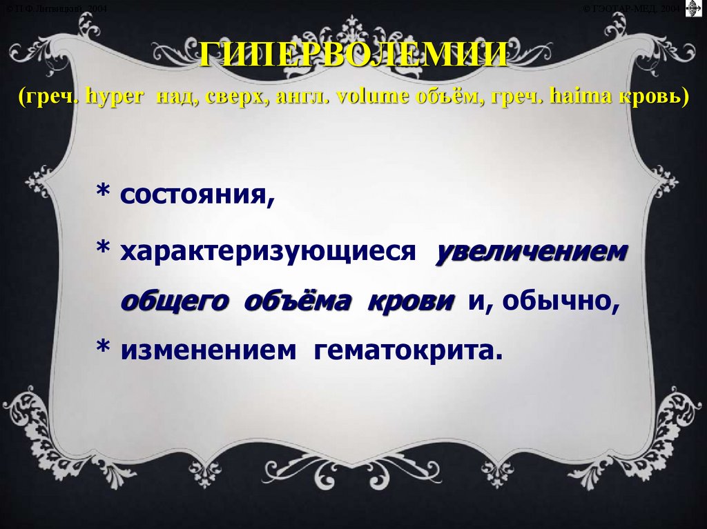 (греч. hyper над, сверх, англ. volume объём, греч. haima кровь)