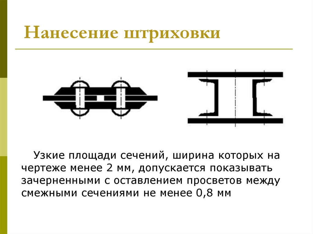 Нанесение штриховкиУзкие площади сечений, ширина которых на