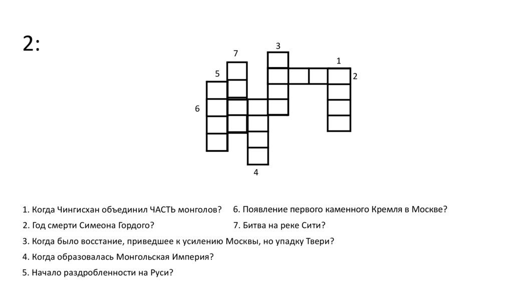 3. Когда было восстание, приведшее к усилению Москвы, но упадку Твери?