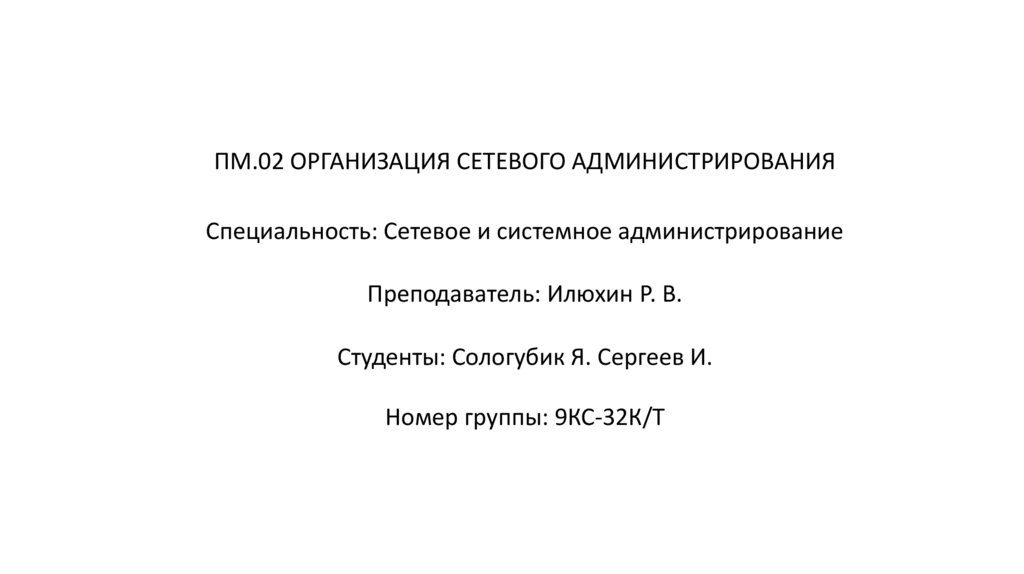ПМ.02 ОРГАНИЗАЦИЯ СЕТЕВОГО АДМИНИСТРИРОВАНИЯСпециальность: Сетевое и системное администрирование
