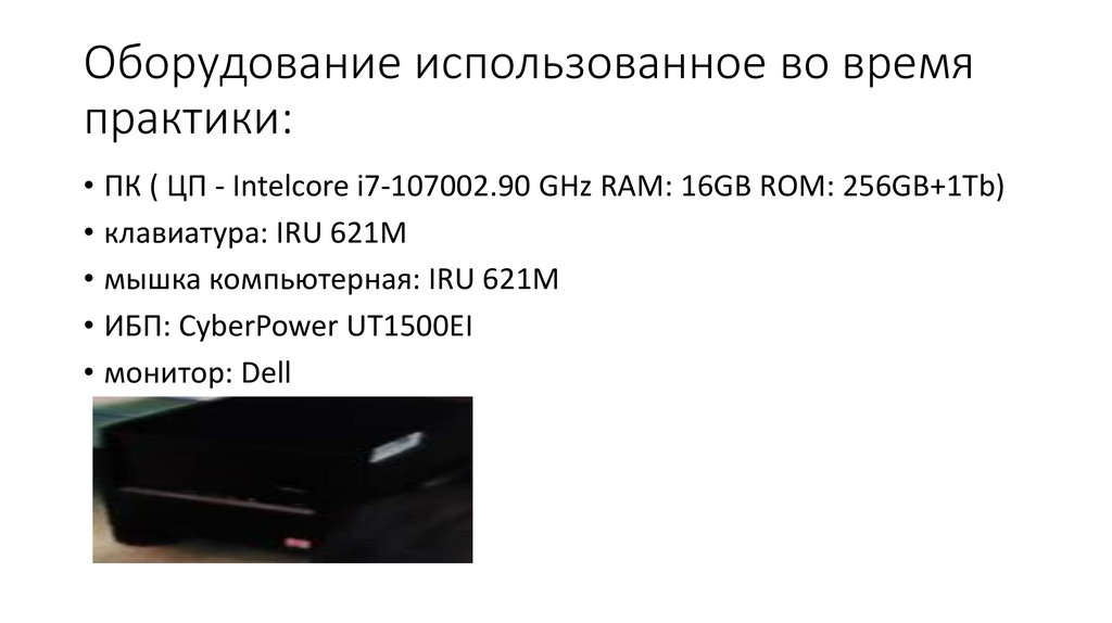 Оборудование использованное во времяпрактики: