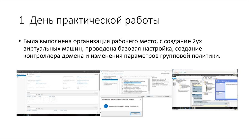 1 День практической работы• Была выполнена организация рабочего место, с создание 2ух