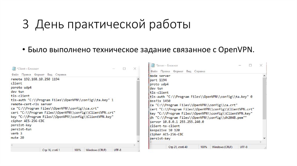 3 День практической работы• Было выполнено техническое задание связанное с OpenVPN.