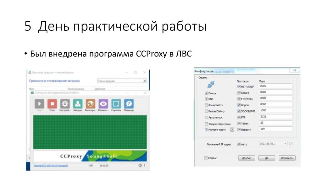 5 День практической работы• Был внедрена программа CCProxy в ЛВС