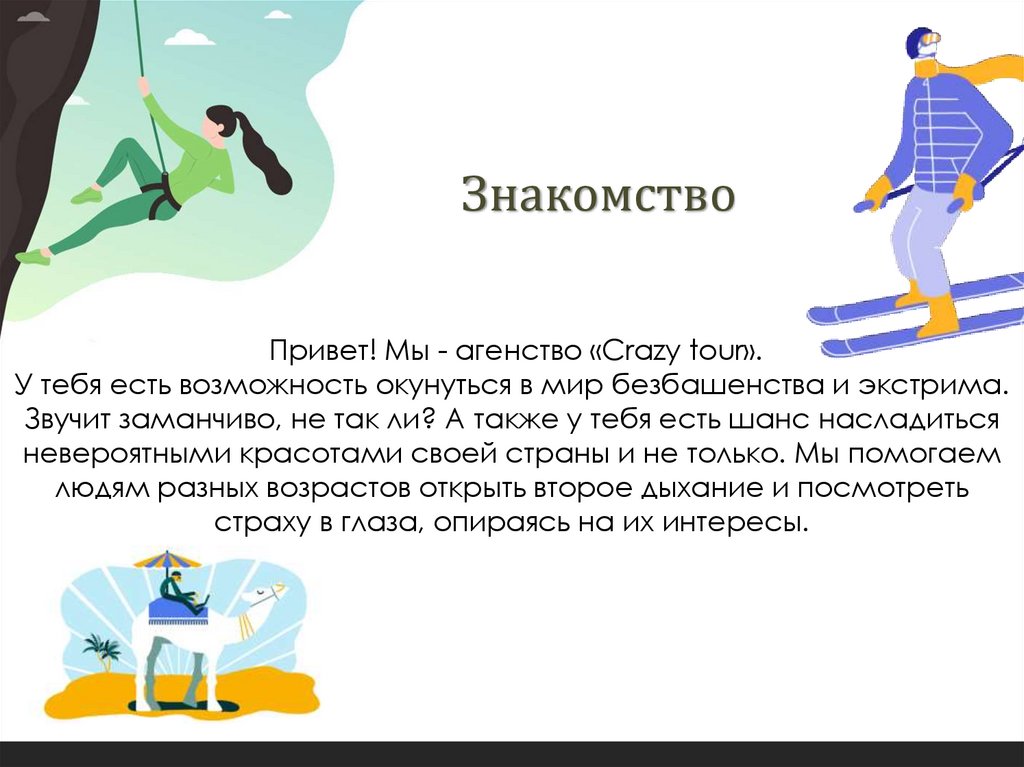 ЗнакомствоПривет! Мы - агенство «Crazy tour».