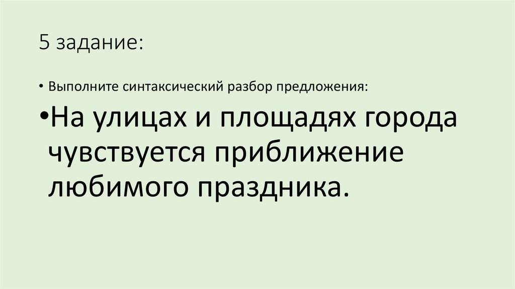 5 задание:• Выполните синтаксический разбор предложения:
