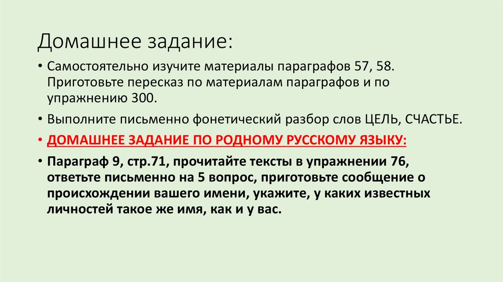 Домашнее задание:• Самостоятельно изучите материалы параграфов 57, 58.