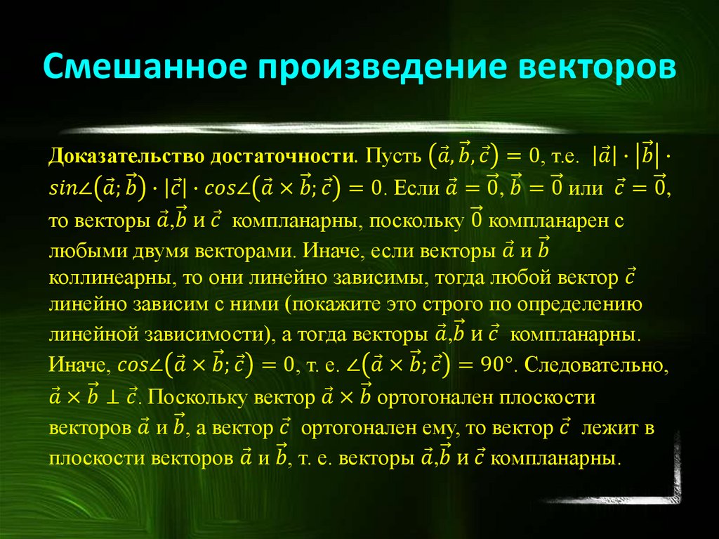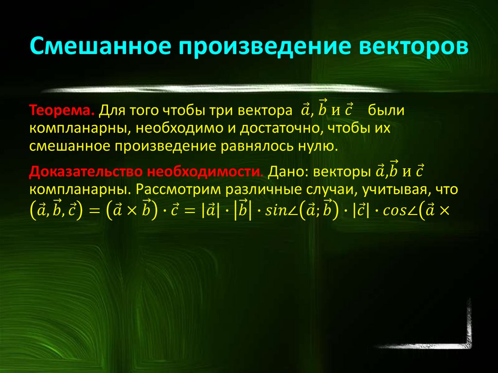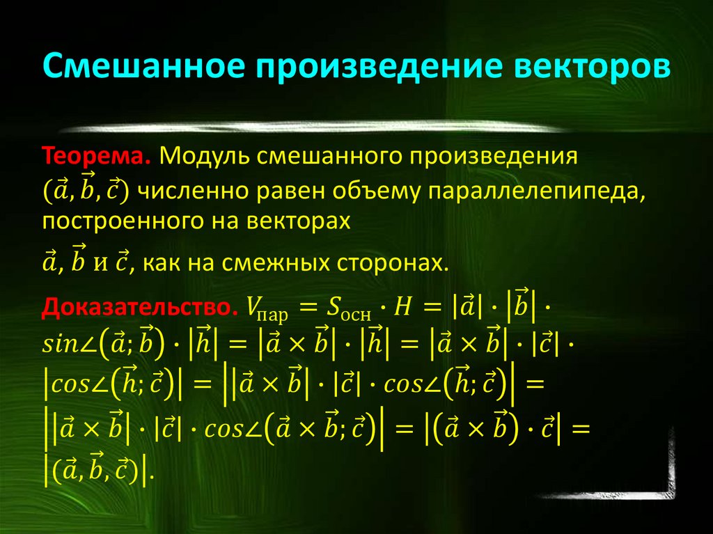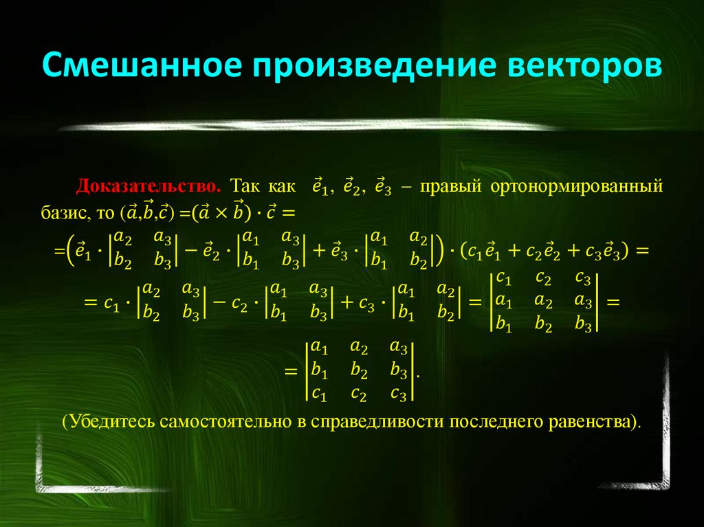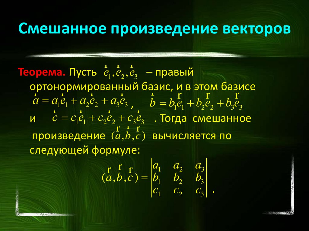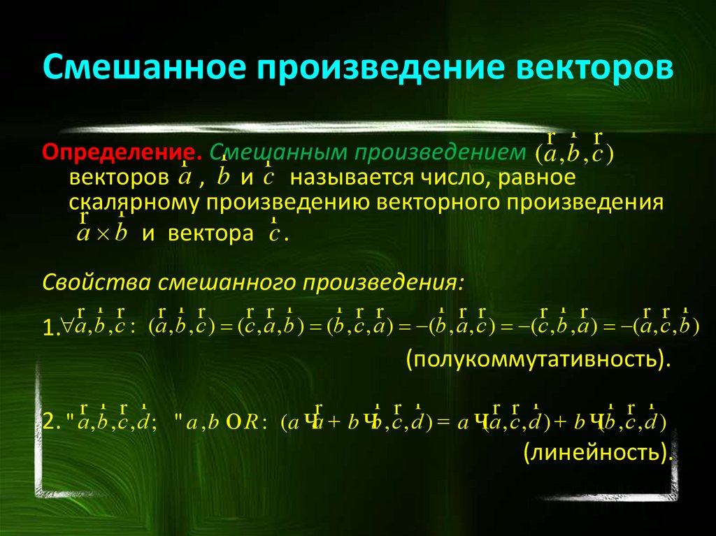 векторов, смешанное произведение трех