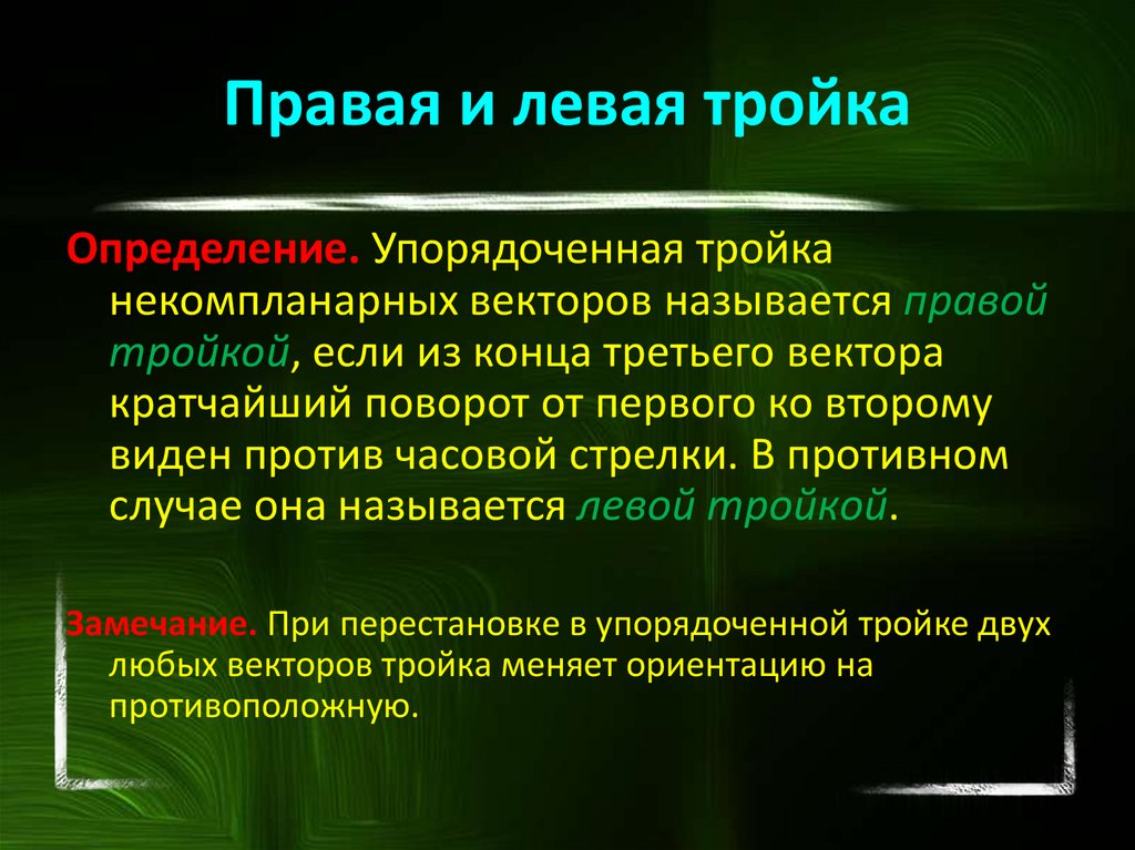 порядке образуют правую тройку.