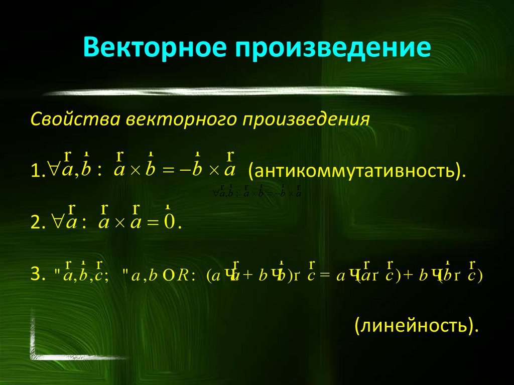 Векторное произведениеСвойства векторного произведения