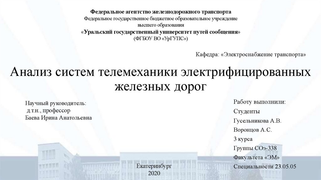 Федеральное агентство железнодорожного транспортаФедеральное государственное бюджетное образовательное учреждение