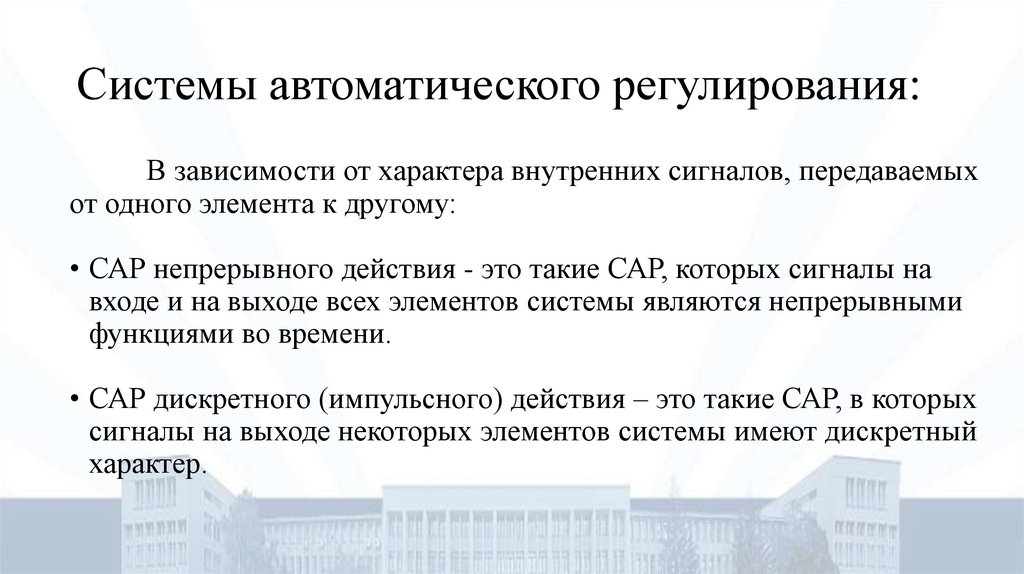 Системы автоматического регулирования:В зависимости от характера внутренних сигналов, передаваемых