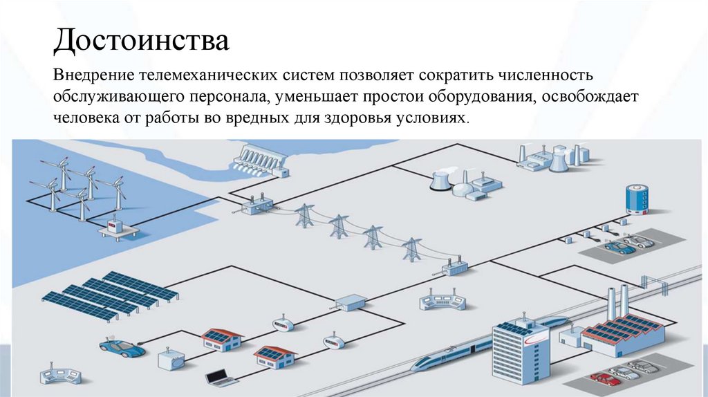 ДостоинстваВнедрение телемеханических систем позволяет сократить численность