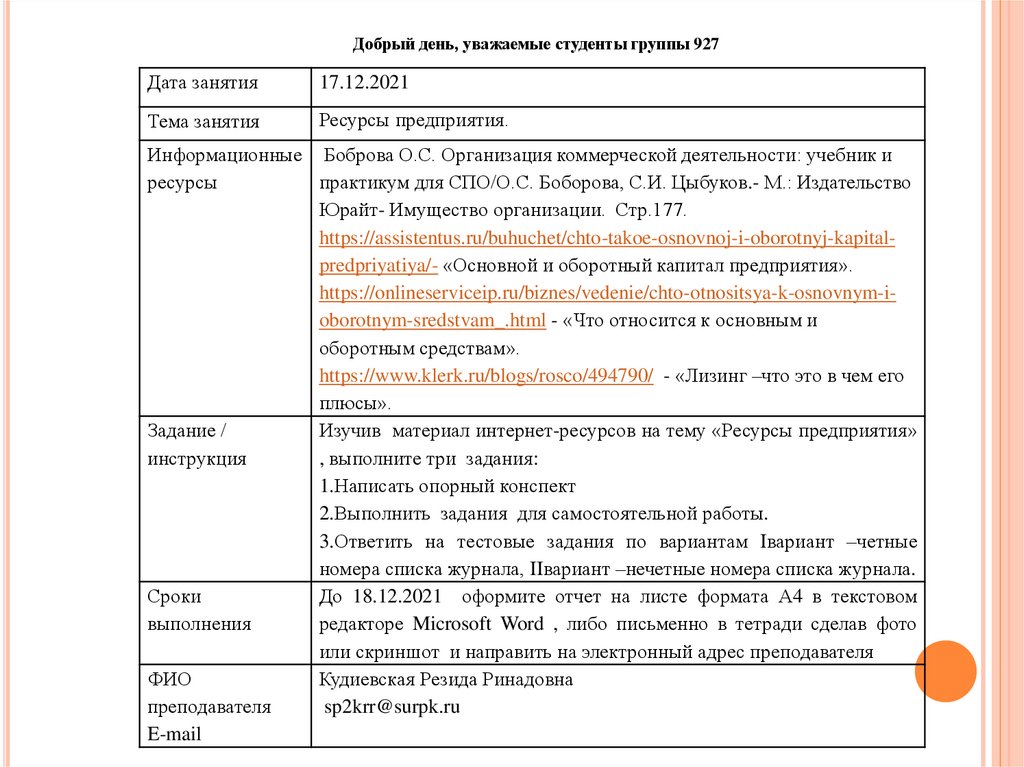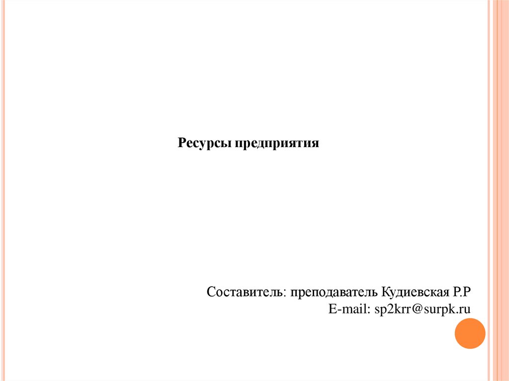Ресурсы предприятияСоставитель: преподаватель Кудиевская Р.Р