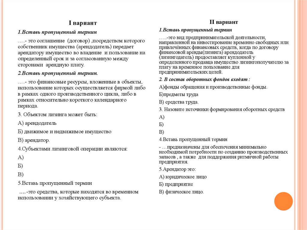 I вариант1.Вставь пропущенный термин