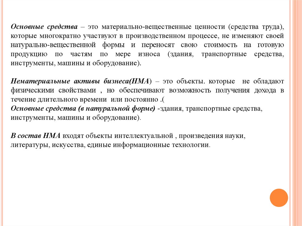 Нематериальные активы бизнеса(НМА) – это объекты. которые не обладают
