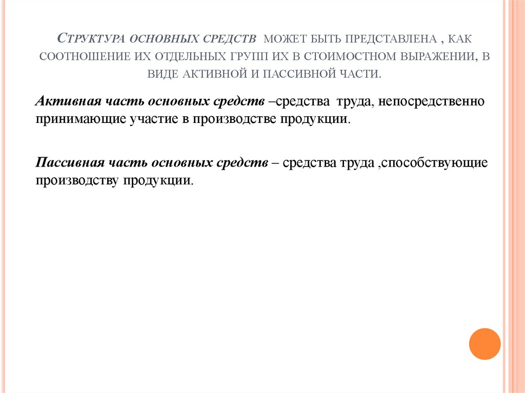 Пассивная часть основных средств – средства труда ,способствующие