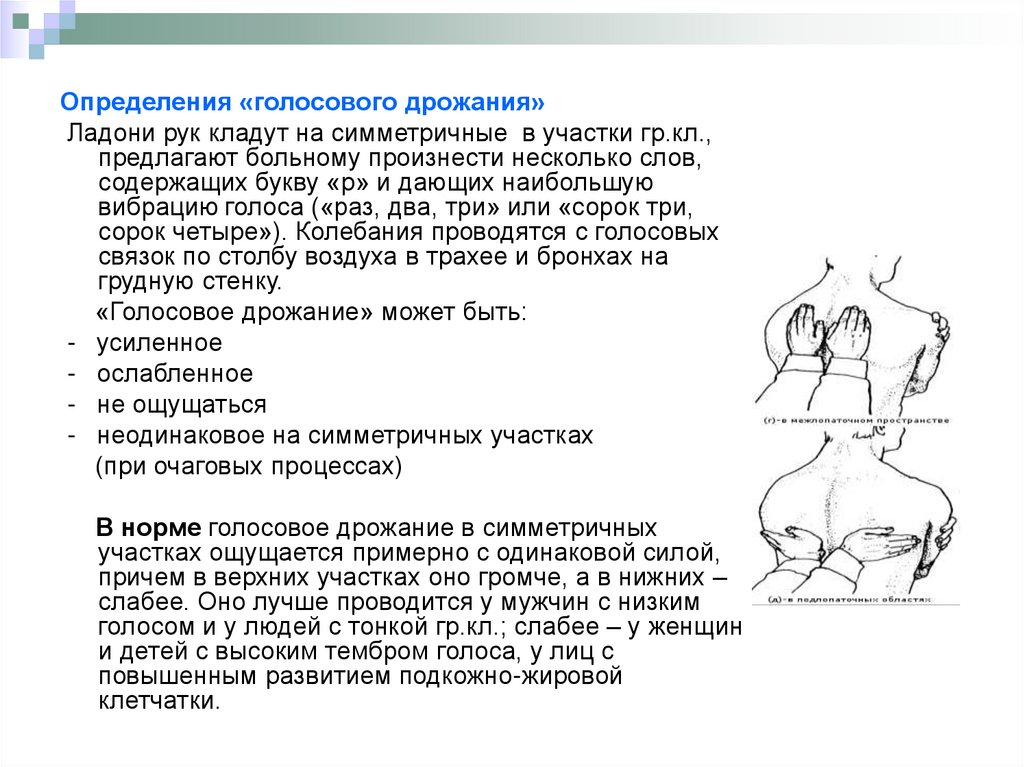 Изучение голосового дрожания,верхушечного сердечного толчка
