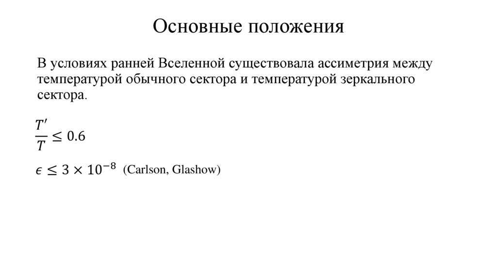 Основные положенияВ условиях ранней Вселенной существовала ассиметрия между