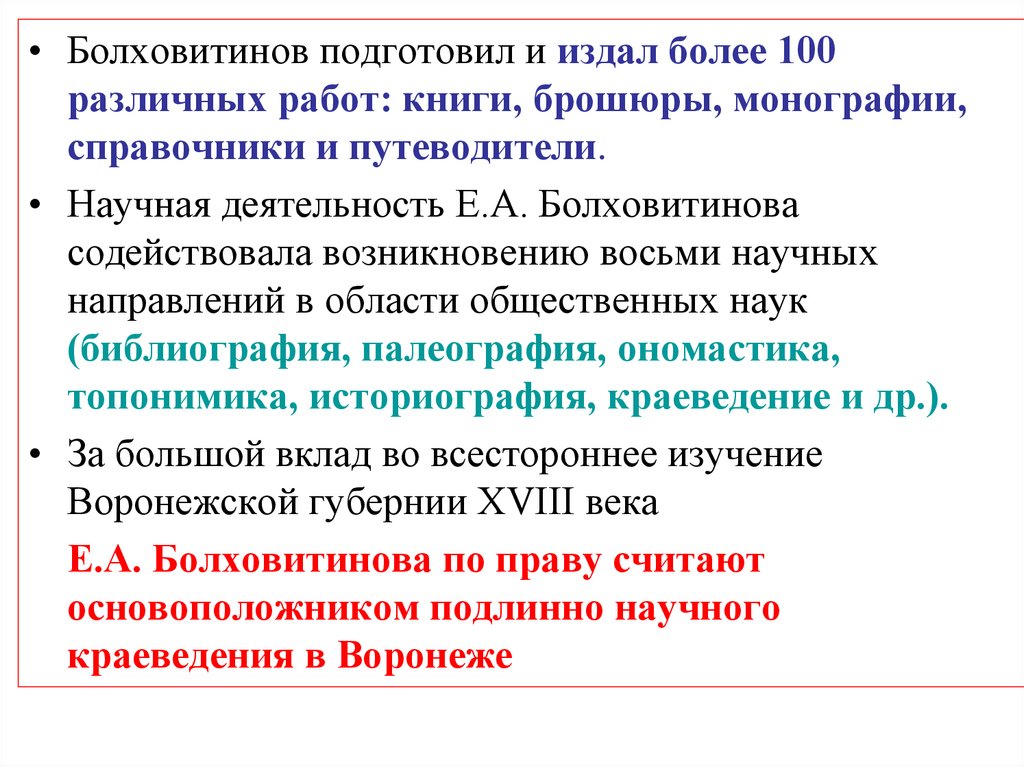 • Болховитинов подготовил и издал более 100различных работ: книги, брошюры, монографии,